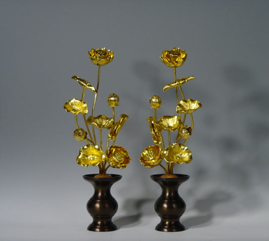 常花・蓮の花/アルミ製 金色 5号 7本立て 価格: 4,290円 レビュー評価: 0.0 レビュー数:0 アルミ製の生地の表面に金色の加工を施した常花です。一対での価格です。高さはば (だいたいです)花立ての最小限必要な内径約18cm約10cm2.1cm花立ては別売りです。この常花用の花立としては、丸型花立て(色付き)(3寸がお勧め)または丸型花立て(みがき)(3寸がお勧め)にセット出来ます。常花と花立を同時にご注文戴きました場合は、当店にて常花を固定した状態で発送できますので、お申し付け下さい。 Supported by 楽天ウェブサービス |